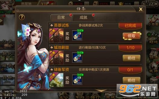 在三国战争手游中,每个任务都会产出固定经验值,是前期升级最快途径。日常任务中的任务难度都较低,能够快速完成,而且每天凌晨5时会重置,所以建议每天上线后的第一件事就是扫光所有日常任务。
