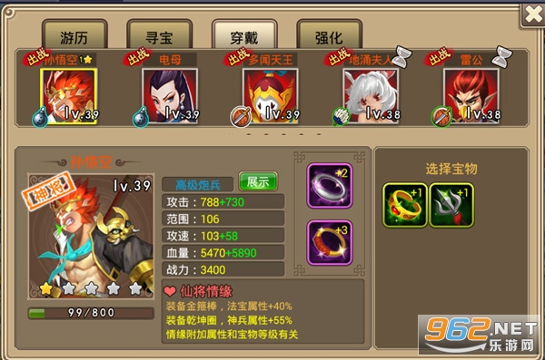 宝物即神兵、法宝,相当于一种特殊的装备,宝物系统是塔防西游记里面最有趣的一个玩法之一,他包含了三部分的内容:游历、寻宝、穿戴强化。