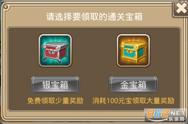 2、通关宝箱:每当玩家经过50点的时候,就可以领取通关宝箱,金宝箱每天只可以领取一次,银宝箱没有限制。