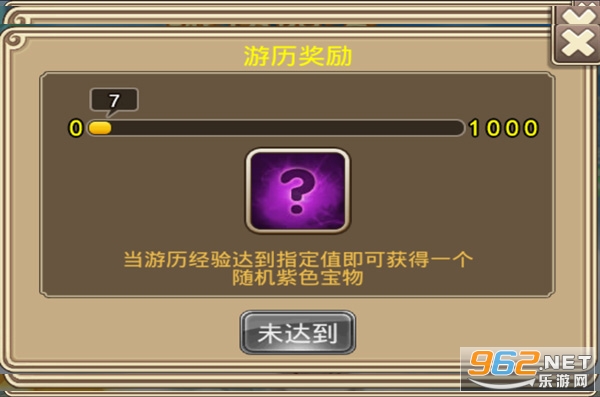 3、玩家累计点数每当达到1000点的时候,即可以领取游历奖励,可以随机获得一个紫色宝物。