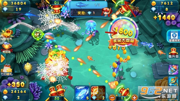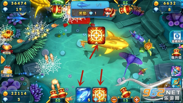 升级炮台能提高捕鱼的杀伤力,攻打大鱼和远处的鱼时必须要使用大炮,如果炮弹不足,是无法捕捉成功的,因此还需要升级炮弹的倍数,倍数越高,冲击力越大。升级炮台需要消耗一定的钻石,钻石如果不够可以在游戏中升级赢得钻石或者去商城购买。