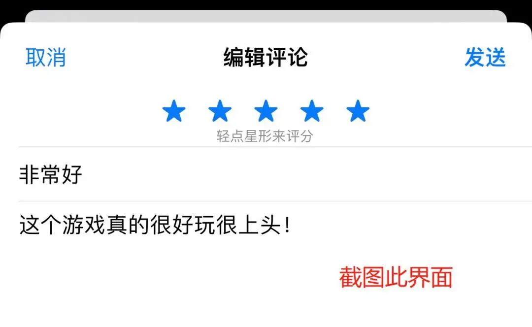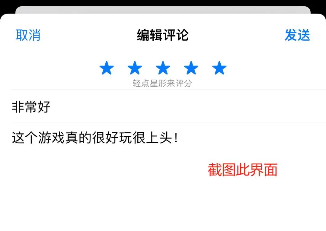 返回App Store的改装大作战页面,点击【星星】进行五星好评。点击【撰写评论】填写好评后发送。