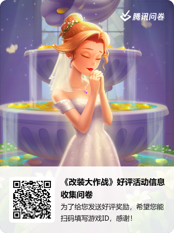 评论完成后将截图和游戏ID填入调查问卷,我们将为每个完成活动的改装宝宝发送惊喜大奖【500体力】