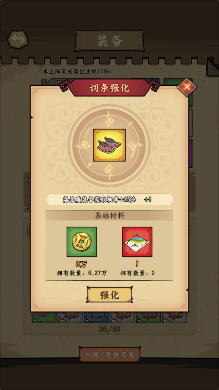 闯关之后产出更高级别的装备,装备出售能获得更多金币。随着关卡的推进,挂机产出和扫荡产出金币也会增多。