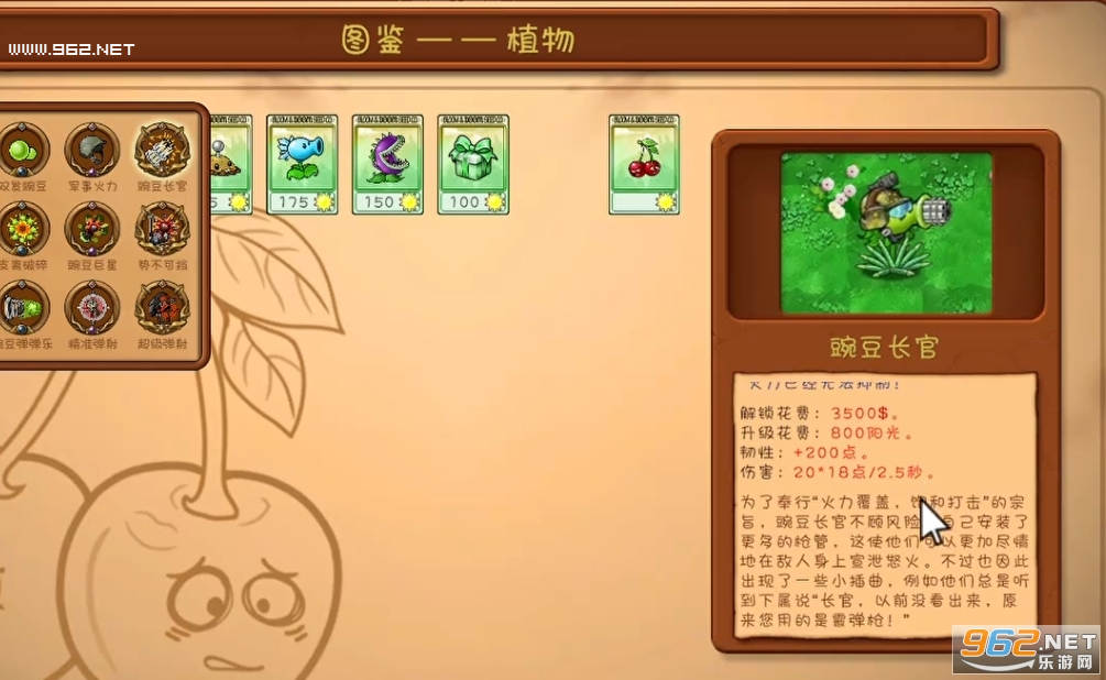 军事火力:豌豆射手获得军事力量,一次发射四颗豌豆。