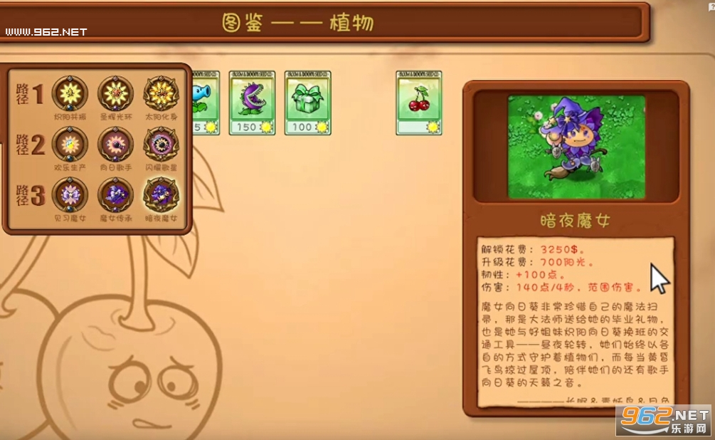 能力简介:获取魔女传承的向日葵不在依靠自身生产阳光,而是通过魔女法杖更快地凝聚魔法之力。