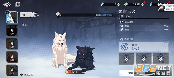 3、式神升星需要消耗对应碎片,升星后可解锁技能,并提升全局属性。
