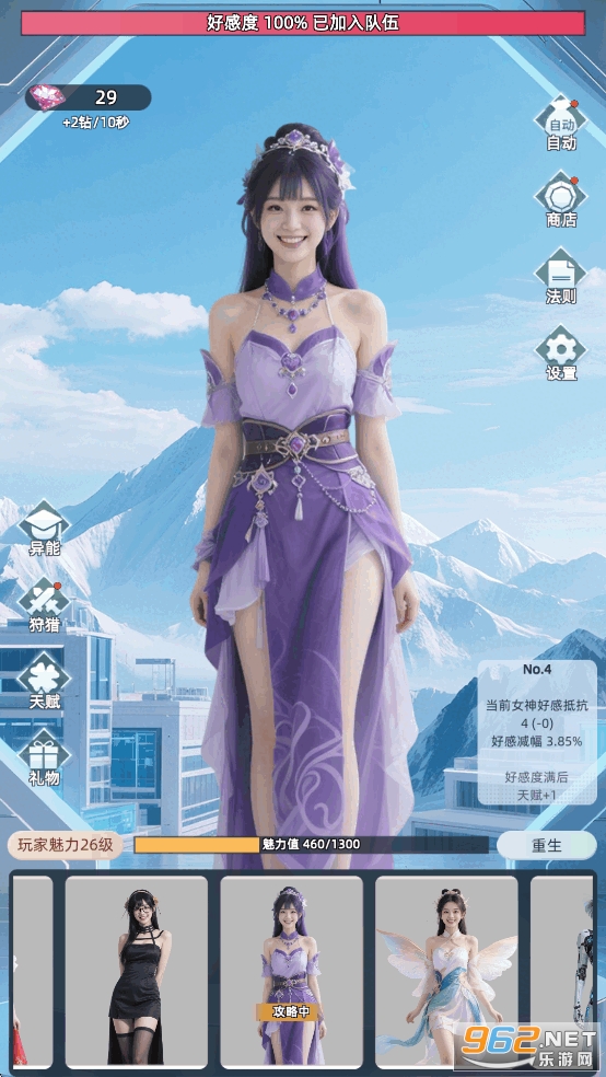 【女神羁绊,核心战力】收集性格各异、能力独特的女神们。每位女神都拥有强大的专属技能,上阵女神越多,彼此羁绊越深,提供的属性加成就越恐怖!你的后宫,就是你的最强神装。