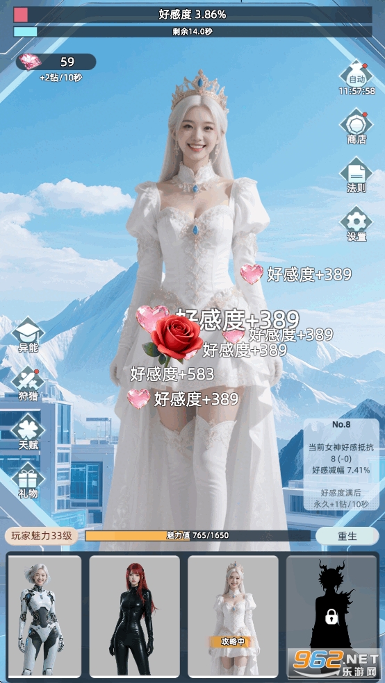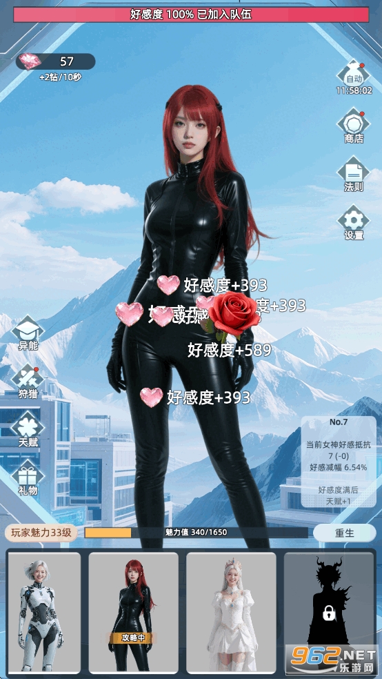 可以通过升级解锁异能、天赋和礼物来提高好感度