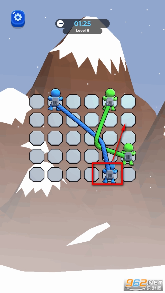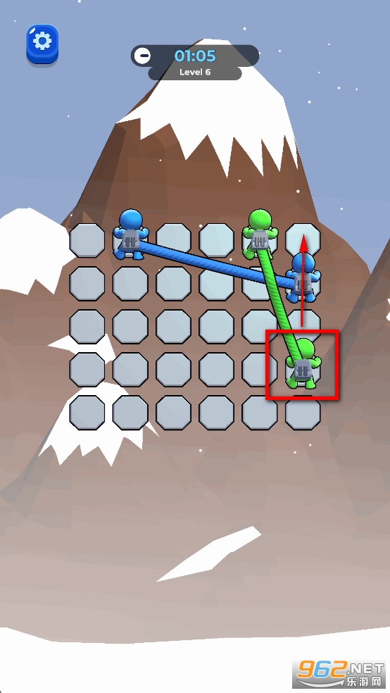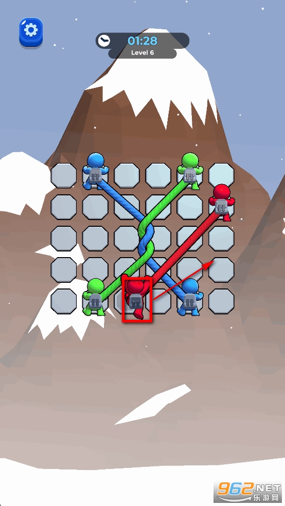 通过观察可以看到红色的小人移动到左侧,红色绳索就没有缠绕了,可以进行消除