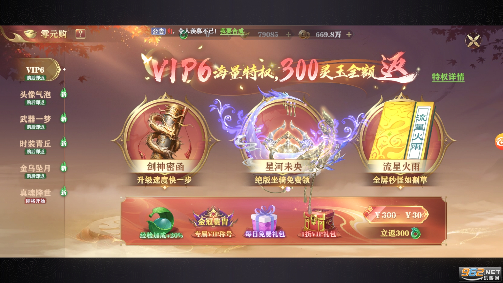 天天秒杀、周卡、直购礼包、真龙秘藏、每日礼包、零元购、灵玉投资、直购豪礼、超值限购