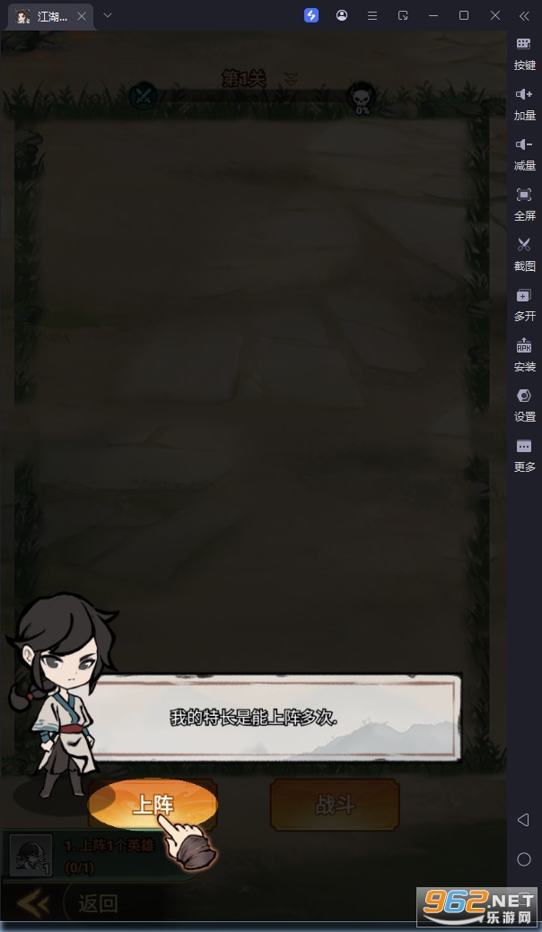 《江湖路不通》是一款放置塔防类游戏,成功拦下一波内所有怪物即可晋级到下一波,没清干净没关系,只要打掉波次中的怪物就会有收益。战斗支持加速,但需要看广告,目前测试阶段,广告是模拟看完的,相当于免费玩。战场周围被宝箱填满了,开启宝箱可以获得武功秘籍,从而增强英雄。宝箱开启后格子空出来,也可以作为战略位置调整。