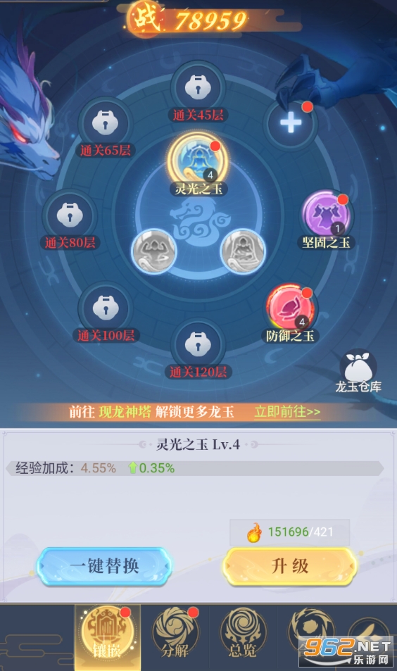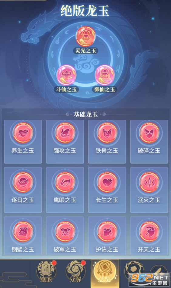 肯定还会有很多仙友不知道如何去选择安装并升级哪种仙玉。因为部分龙玉的效果是直接体现在数值上面,部分龙玉的效果则是百分比加成,在游戏前期的时候,仙友们可以先安装可以直接提高数值的仙玉更具有性价比,但是到游戏中后期的时候,仙友们就可以安装一些直接提高百分比的更能快速提高战力