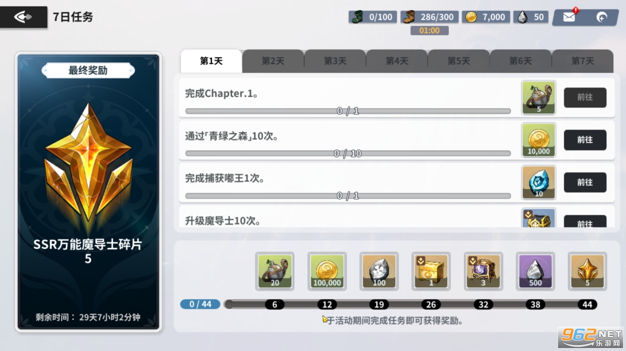 主线优先:首日推进至第一章第7 节解锁【一般挑战・青绿之森】副本,开启扫荡与派遣功能,后续每日优先推主线解锁系统,同步获取抽卡资源。