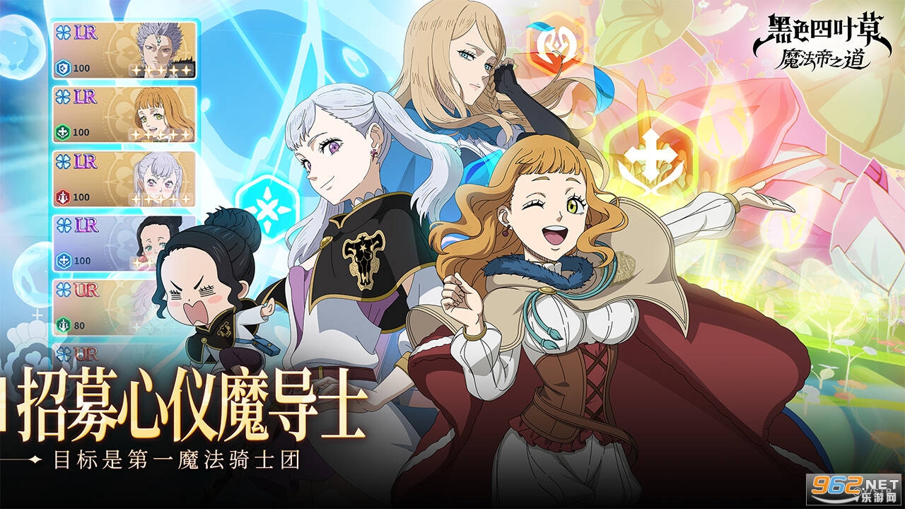 收集传奇魔导士:从黑色的四叶草到金色的黎明,九大魔法骑士团的精英魔导士任你招募。每一位角色都完美还原了其独特的魔法书与性格。