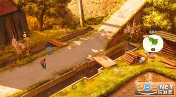 老奶奶最初会因排水阻挡去路,需等待黄昏时她离开,她的田里面有个闪光点就是紫苏叶。