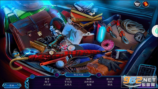 2、玩家需要在这里找到手套、灭火器、指纹、手电筒、文件夹、眼镜油炸圈饼、放大镜、相机、腕表、绳子等物品;
