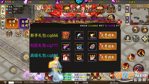 3、免费礼包:游戏内还提供福利礼包,且兑换码就写在旁边,