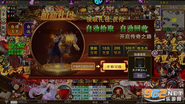1、开服豪礼:上线就赠送萌新礼包,自动拾取和自动回收伴你开启传奇之路。