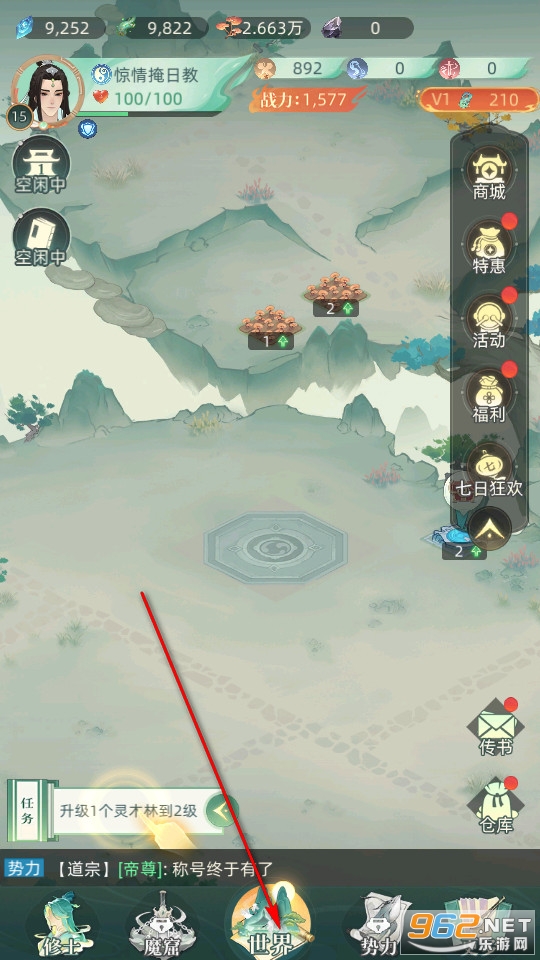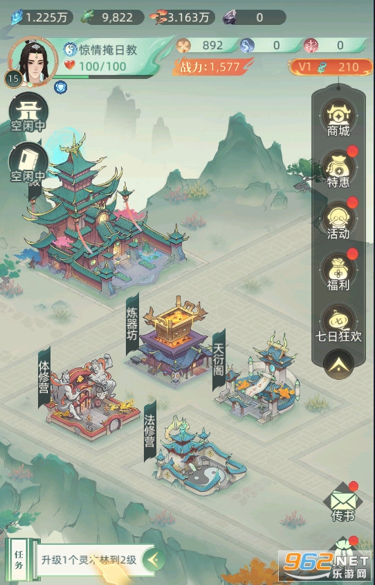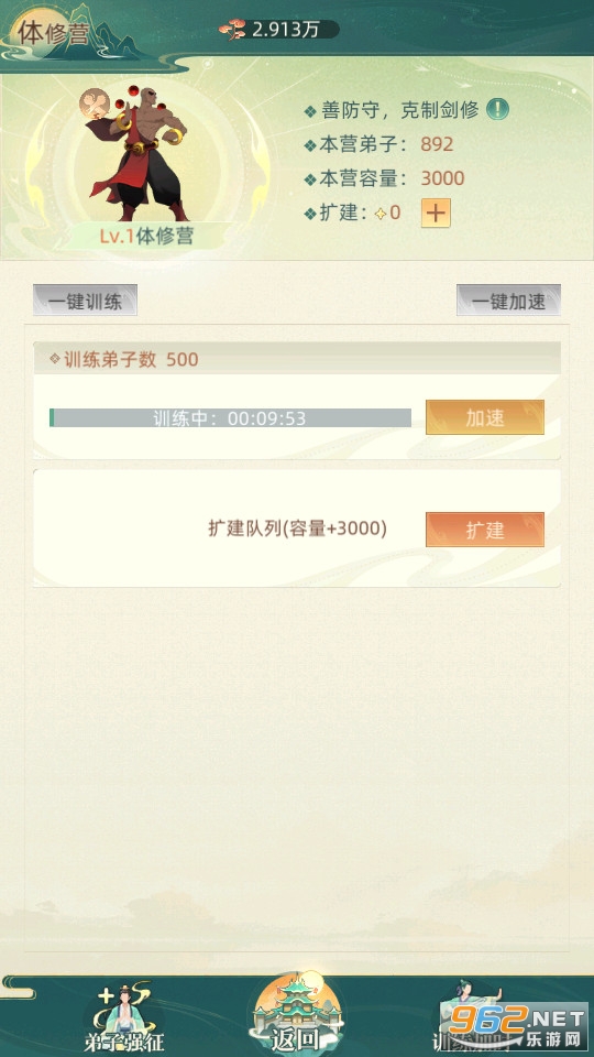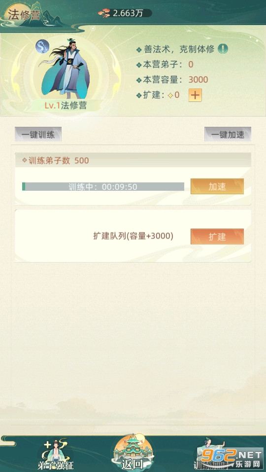 玩家在开始时就可以在主界面经营宗门,为宗门里的修士提供战力提升