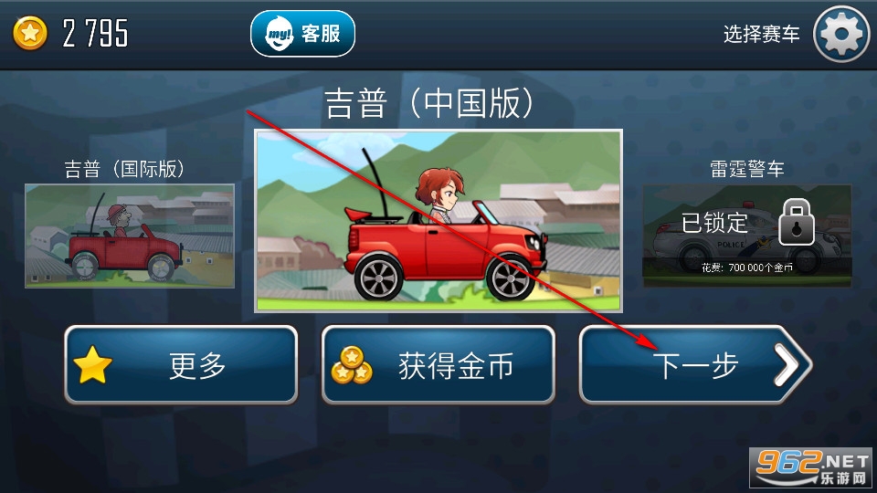 进入游戏选择自己的赛车,然后进入下一步。
