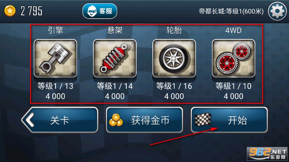选择赛车配件,点击开始游戏