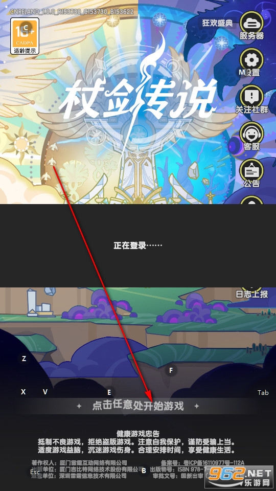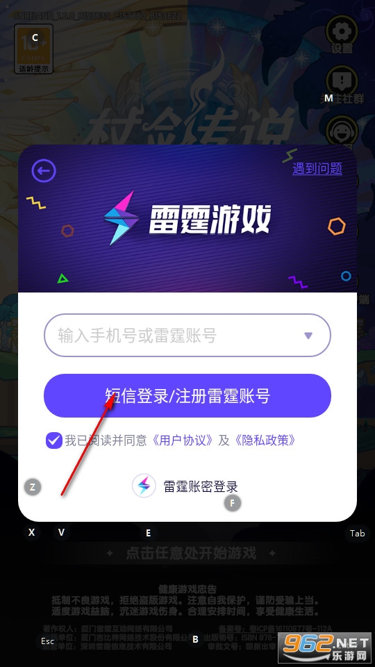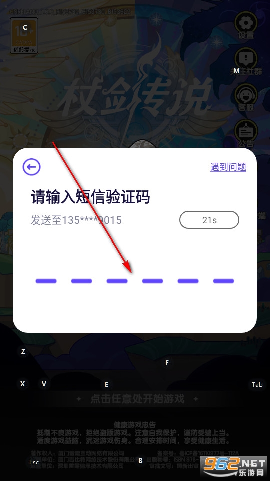 打开游戏杖剑传说,然后在登录界面输入电话号码一键注册或短信登录。