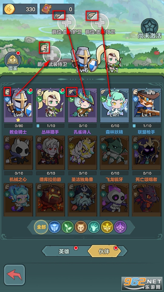 然后我们需要注意伙伴的职业是什么,然后选择对应伙伴上阵进入指定位置,伙伴的左上角有图标,对应着可上阵的伙伴位置。