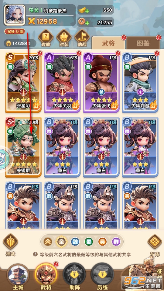 然后我们在武将界面选择自己需要升级进阶的武将。