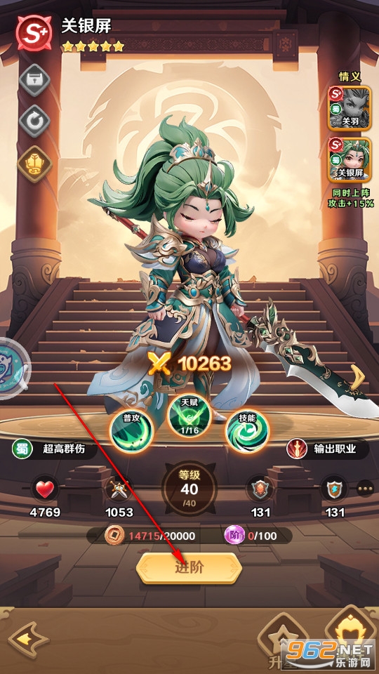 进入想要升级的武将的页面,点击武将下方的按钮就可以进行升级。