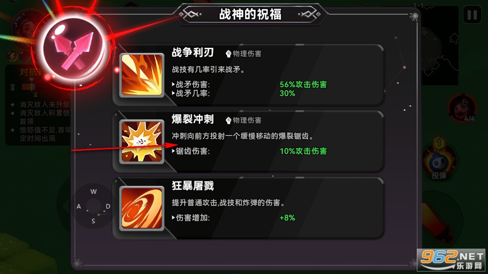 然后我们可以选择战神方向的角色属性,选择以后就可以继续探索,挑战更加强大的敌人。