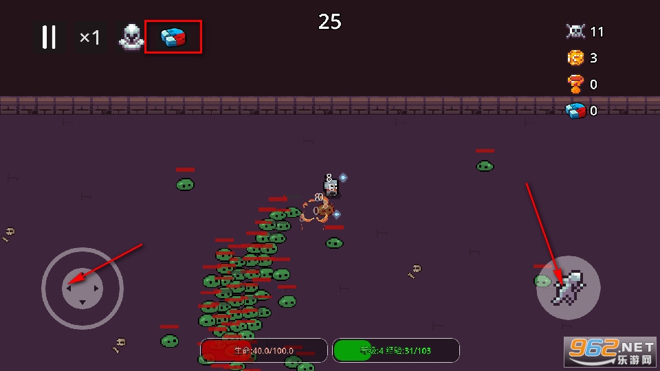 我们还需要回到打败敌人的路径上拾取敌人的金币和经验提升自己,也可以使用吸铁石道具来对掉落物品进行吸附。