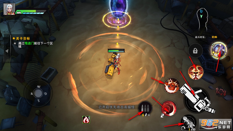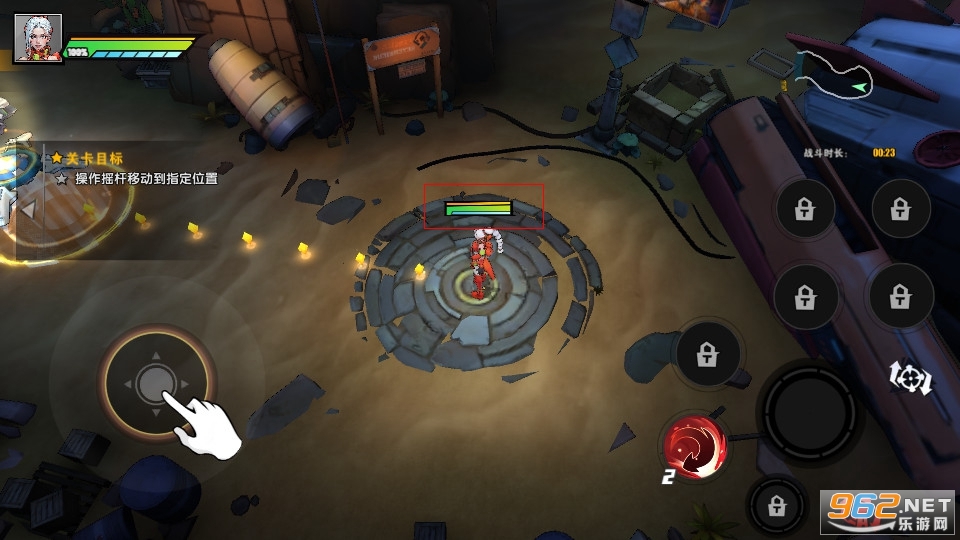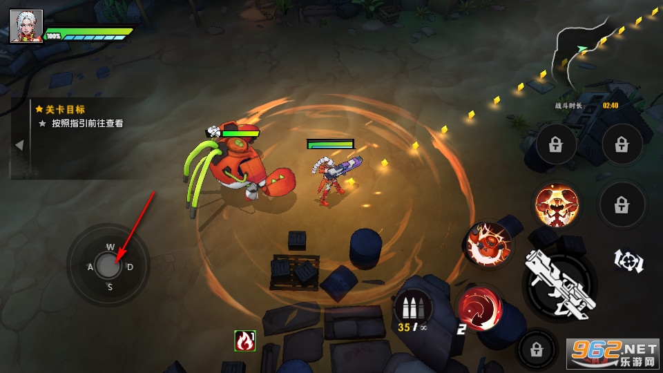 游戏中玩家需要操作角色清除虫族,左下方是移动键可以进行角色移动。