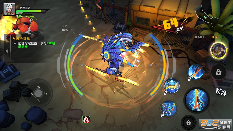 点击不同的按键人物会有相应的动作,点击机甲则会召唤机甲,机甲的技能和攻击方式都会和玩家所操纵的角色不同。