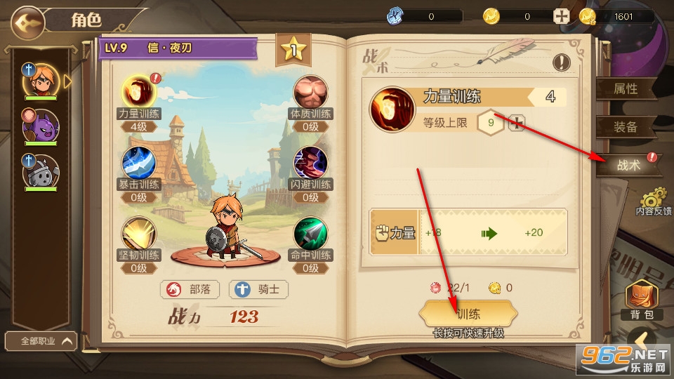 我们选择在需要提升的角色右方点击战术即可进一步对该角色进行针对属性的提升训练。