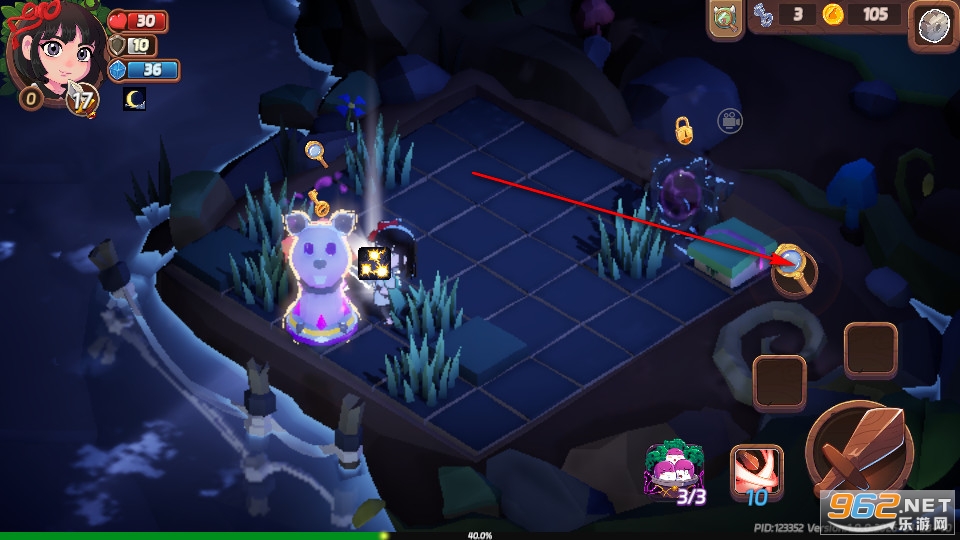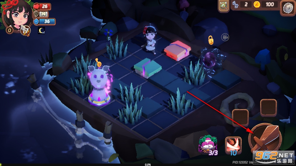 在游戏冒险中点击右下角木剑图标玩家即可发动技能和普通攻击清理怪物和障碍。