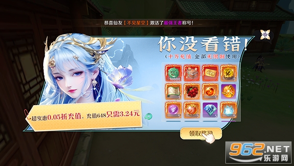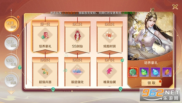 2、创建好角色之后玩家就可以领取创角福利啦,内含海量资源礼包。