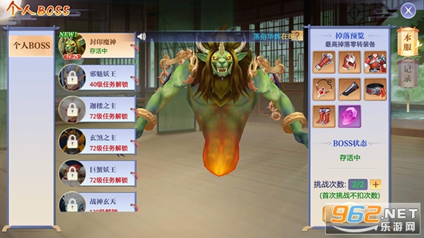 6、此外,游戏还还有个人、跨服、世界等多种boss可以挑战,boss等级越高,掉落奖励就越丰富。