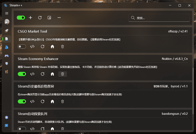 瓦特工具软件内置了大量的游戏相关油猴脚本:Steam 显示史低价格、一键出售 Steam 库存物品、跨区汇率换算、批量激活 CdKey 。脚本可以直接植入 Steam 客户端,体验比原先的脚本更为优秀。用户也可以制作自己的脚本导入软件进行使用。