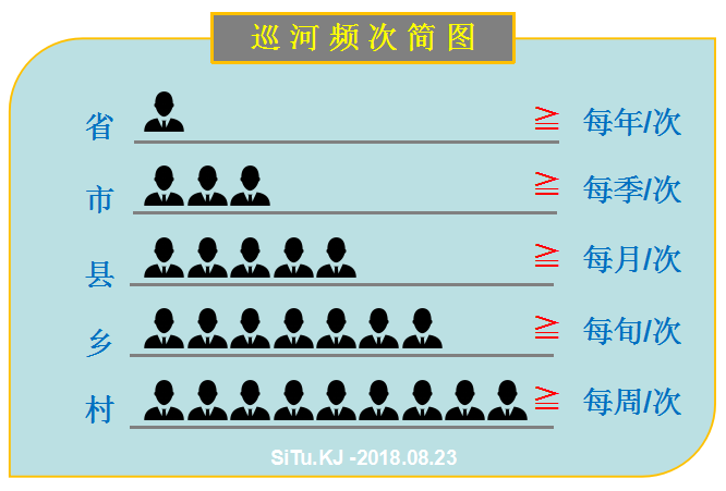 1.按照上级要求,镇级河长每旬至少巡查一次,每月巡查不少于3次;每次巡查需保留好影像资料,填好巡查登记表,并积极主动解决在巡河中发现的问题;村级河长每周至少巡查一次,每月巡查不少于4次,每次巡查需保留好影像资料,填好巡查登记表,并积极主动解决在巡河中发现的问题。