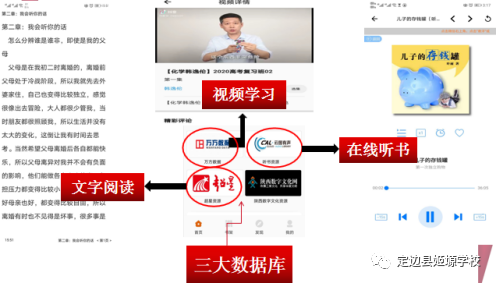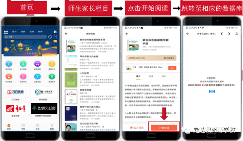 4.点击APP首页进入阅读学习,可选择教师园地、学生阅读、家庭教育等栏目,亦可点击万方中小学数据库、云图有声听书、超星资源学习阅读