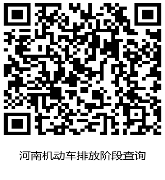 使用手机浏览器应用(微信、支付宝不支持程序下载)扫描下面二维码下载并安装“河南省排放阶段纠正APP”。安装后,通过车牌颜色、号牌号码、车架号后 8 位,精准查询车辆排放阶段,若排放信息有误时可通过软件指引申请纠正