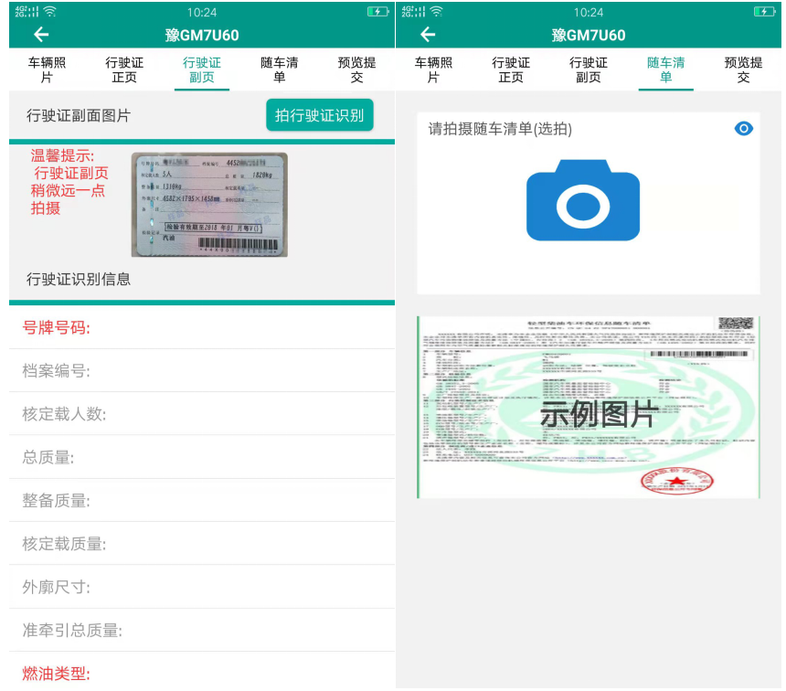 申请人需认真核对行驶证与al识别内容信息是否一致,减少由于信息错误无法过审的问题。