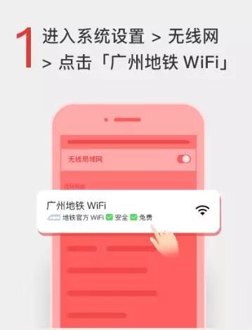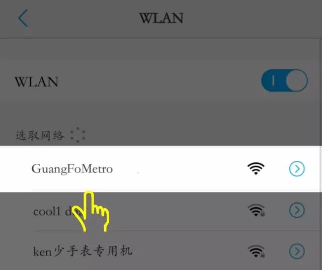 1. 在地铁内(付费区内)打开WiFi列表,找到“广州地铁WiFi”并点击连接。