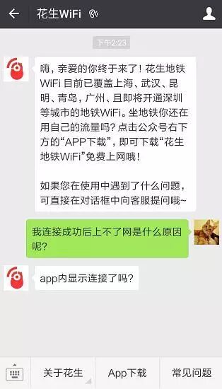1. 搜索并关注公众号“花生WiFi”,直接在微信公众号内联系在线客服;