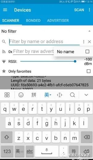 (1) 可以根据bluetooth设备名字或者mac地址进行过滤。也可以不输入名字或者。点击编辑框后面的三个竖点,可以看到no name选项。