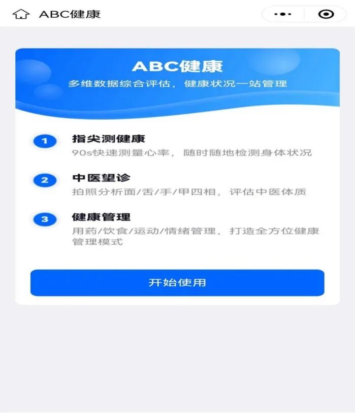 第三步 进入本界面ABC 健康,点击下方开始使用
