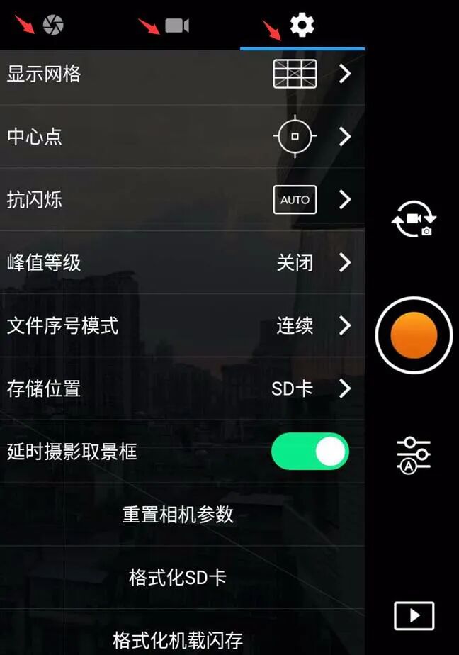 15.拍照和录像切换按键:在录制视频时一定要切换为录像模式并按圆形橙色的录制键。