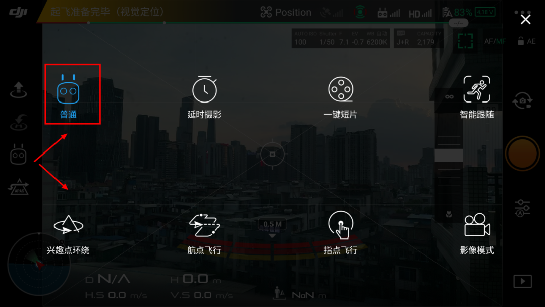 智能飞行拍摄模式示意图(红框为普通拍照片模式)
