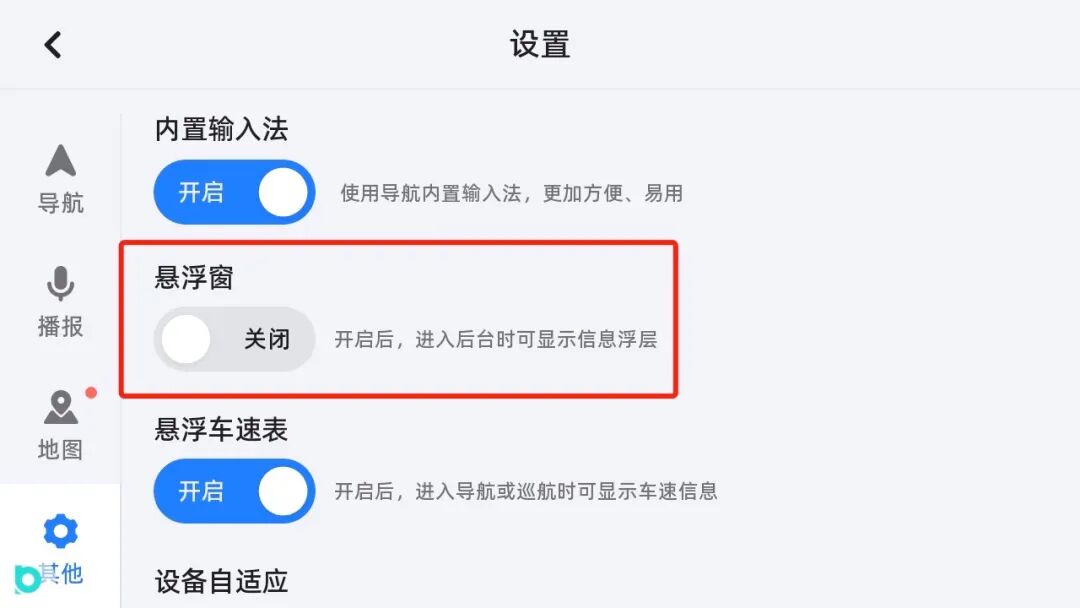3、 隐藏布丁地图画中画后,地图小悬浮窗仍会出现进入地图设置界面,选择【其他】将【悬浮窗】关闭即可。